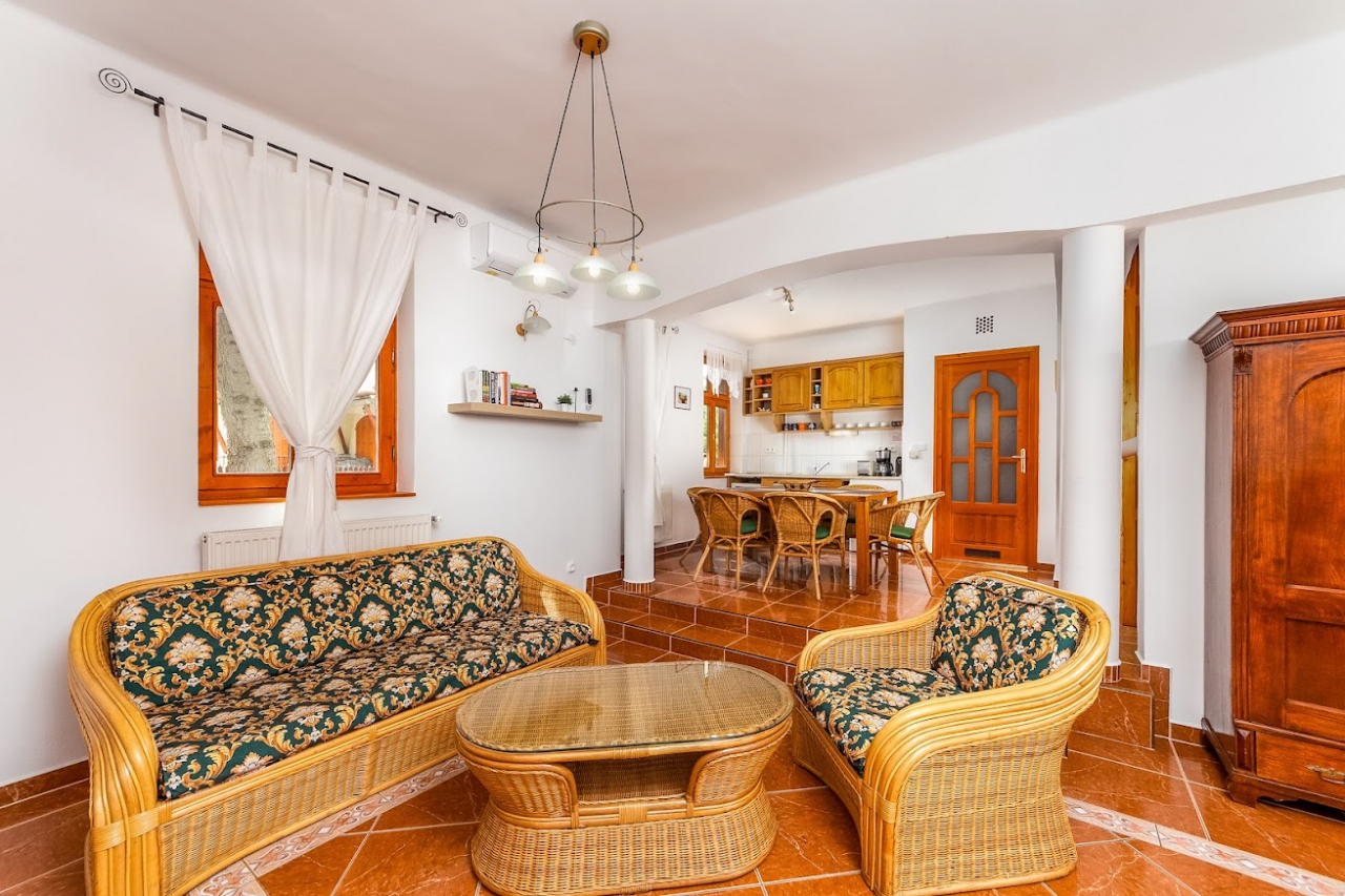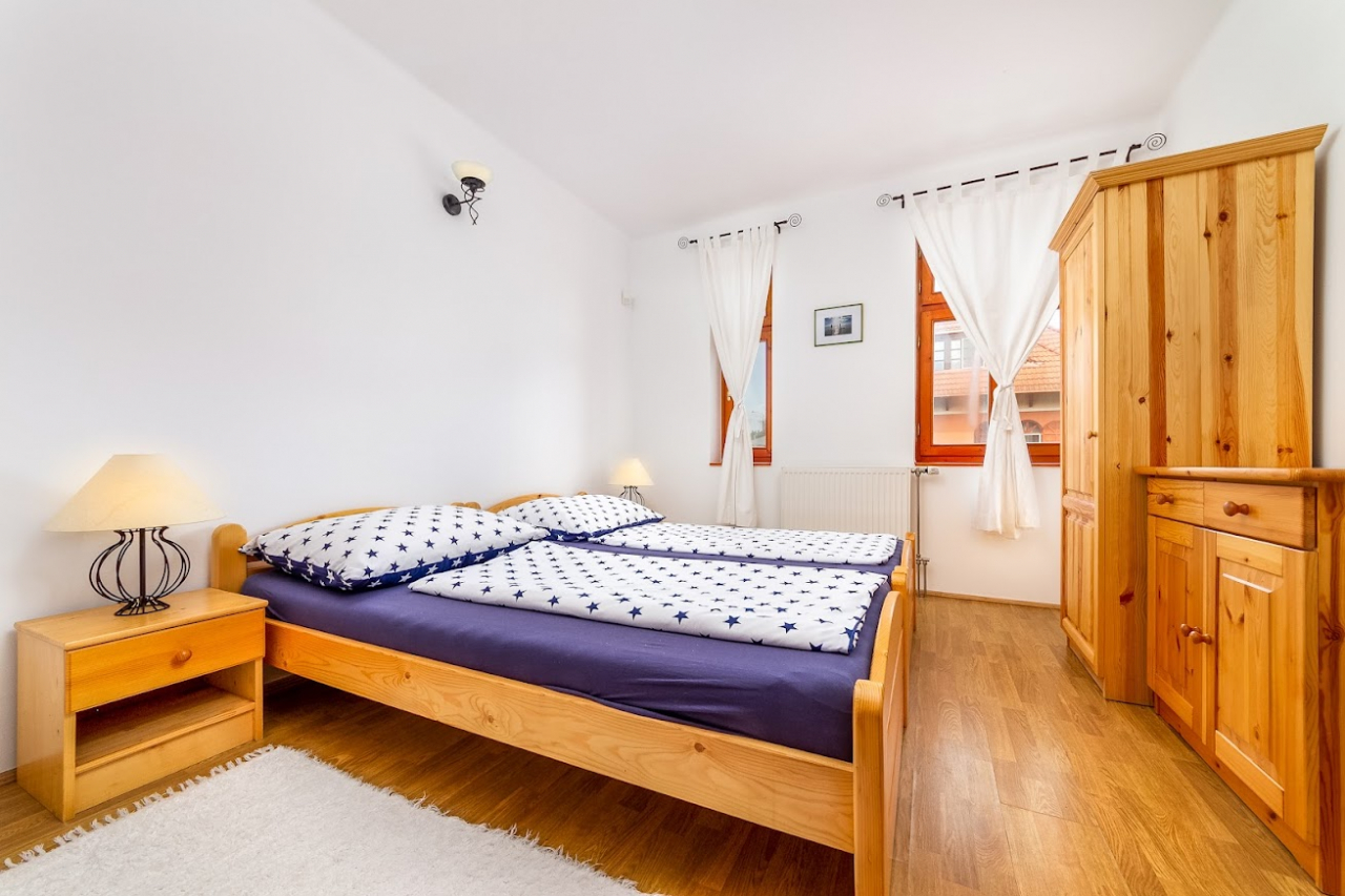 Information: Neue Doppelhaushälfte für 8 Personen in strandnaher Lage mit erhobener Einrichtung und WLAN. Garten, Gartenmöbel, Gartengrill, Swimming pool, Autoabstellplatz, Sonnenliegen, Steg, Sat-TV, Klimaanlage sind vorhanden. Buchbar von Freitag bis Freitag.