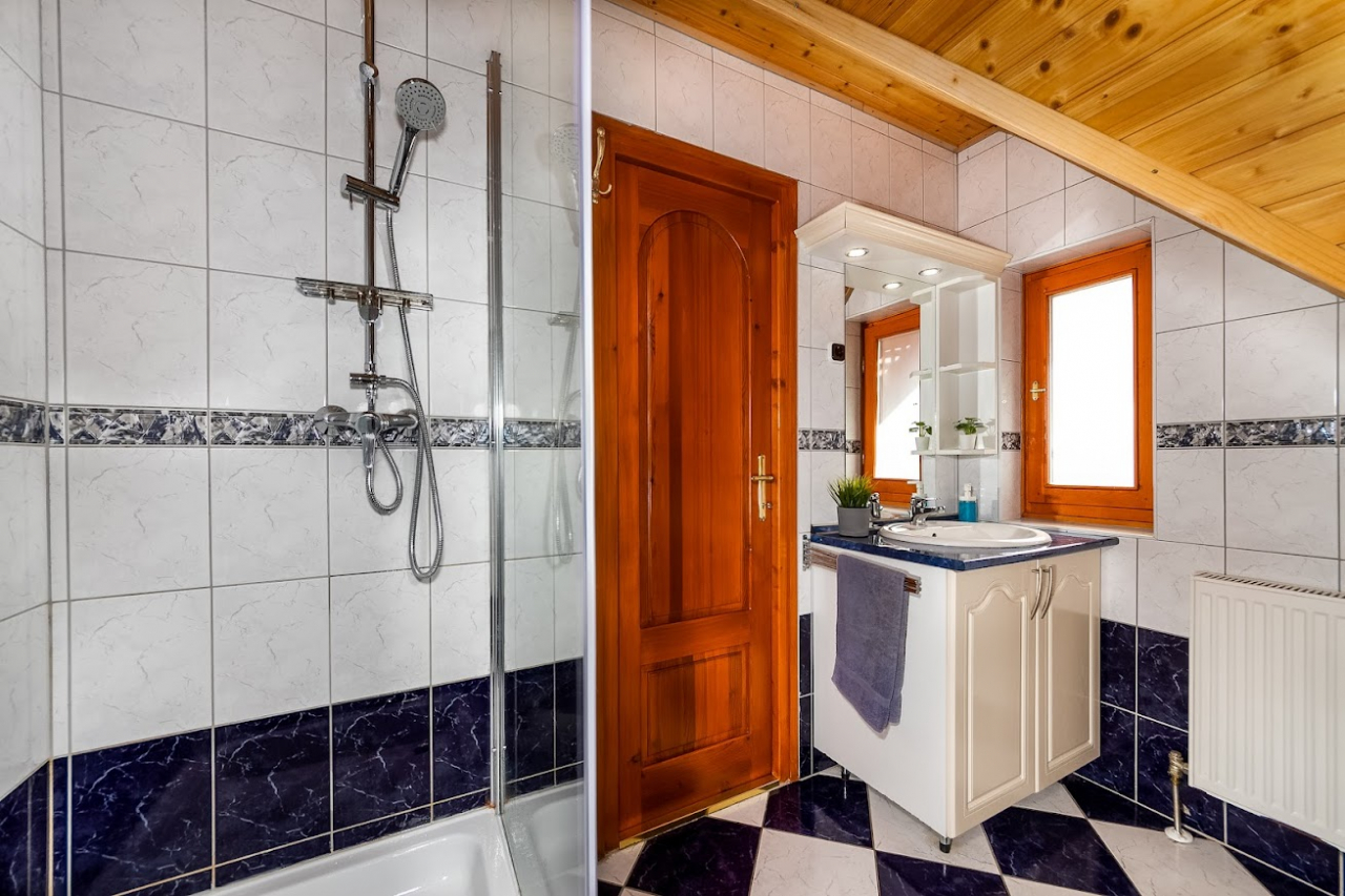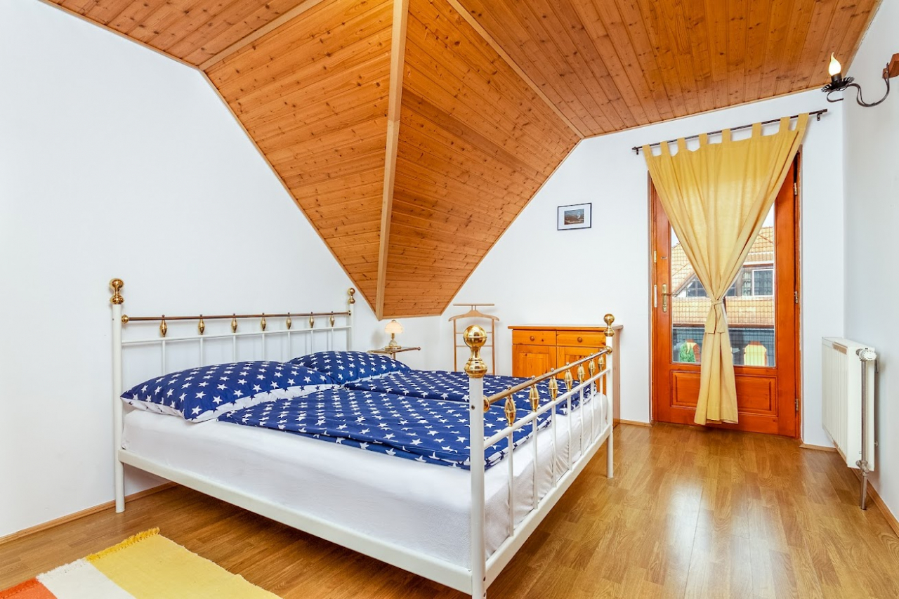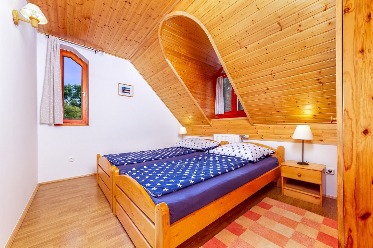 OG: Dusche/WC, drei Zweibettzimmer, Balkon.