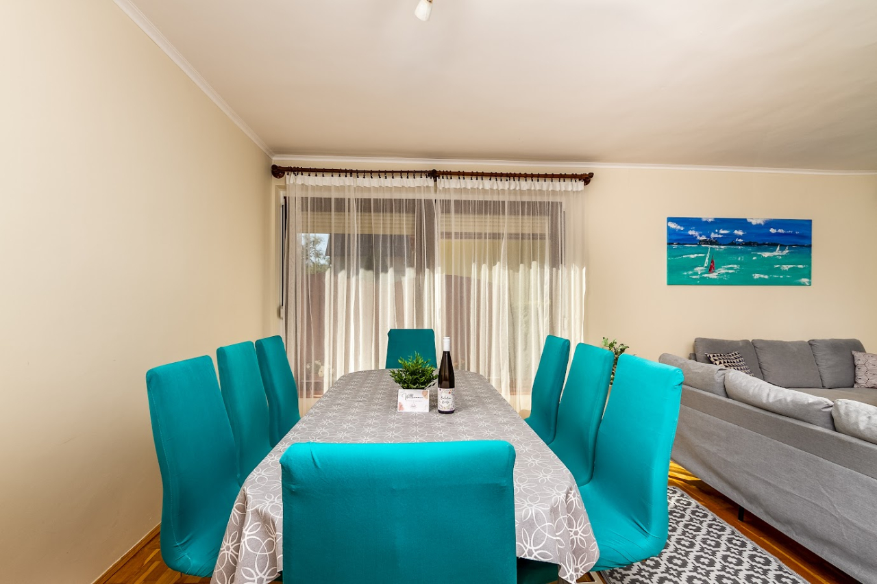 Alleinstehendes Ferienhaus für 6 Personen in strandnaher, ruhiger Lage mit Waschmaschine, WLAN, Klimaanlage ( im Preis ). Garten, Gartenmöbel, Gartengrill, Sonnenliegen, Hollywood-Schaukel, Garage, Autoabstellplatz. Haustiere sind nicht erlaubt.