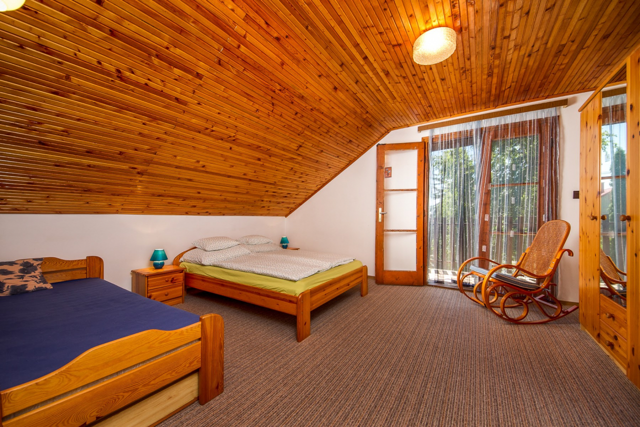 OG: Ein Zweibettzimmer, ein Dreibettzimmer, WC, Balkon.