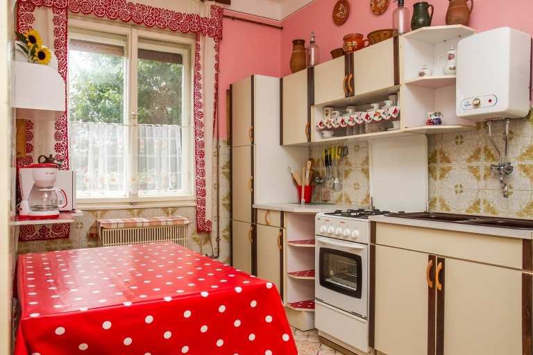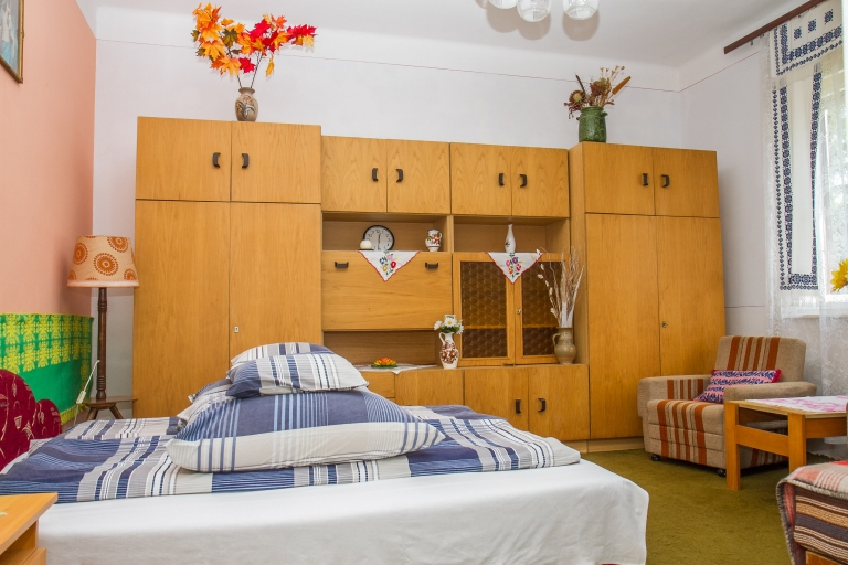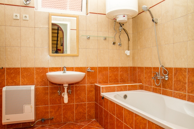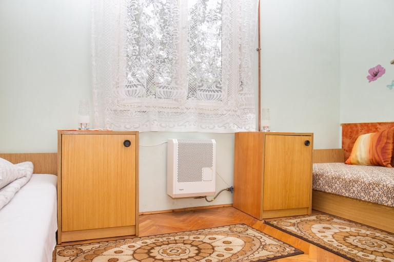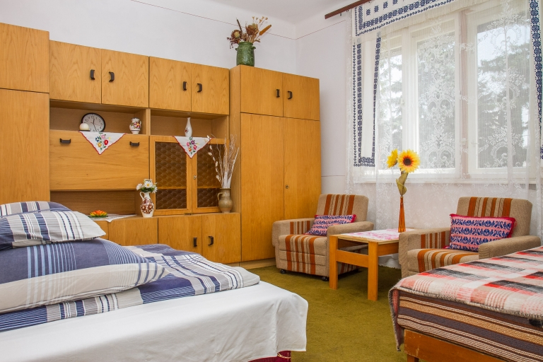 EG: Wohn-Eßzimmer, Küche, Bad, WC, ein Zweibettzimmer, ein Dreibettzimmer, Terrasse.