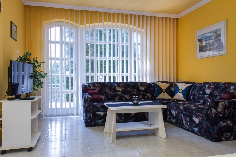 Information: Klimatisierte Doppelhaushälfte für 4 Personen mit schöner Einrichtung. Garten, Gartenmöbel, Gartengrill, Autoabstellplatz, Sat-TV.