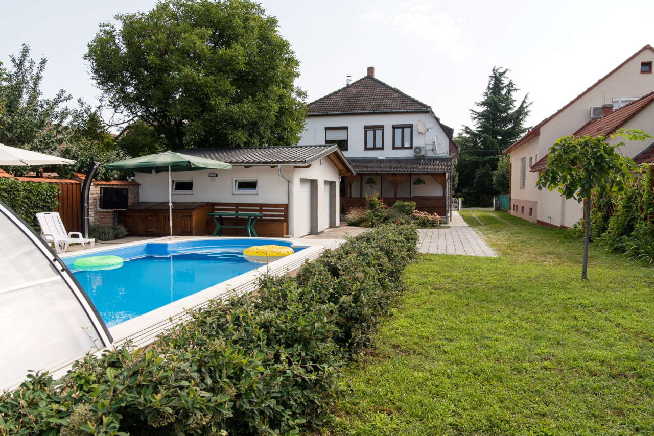 Gepflegter Garten, Gartenmöbel, Gartendusche, Sonnenliegen, Hollywood-Schaukel, Gartengrill, Autoabstellplatz, SAT-TV, 4 Klimaanlagen ( inklusive ), Pool ( 8 x 4 x 1,4 m ).