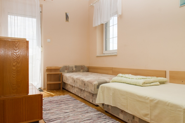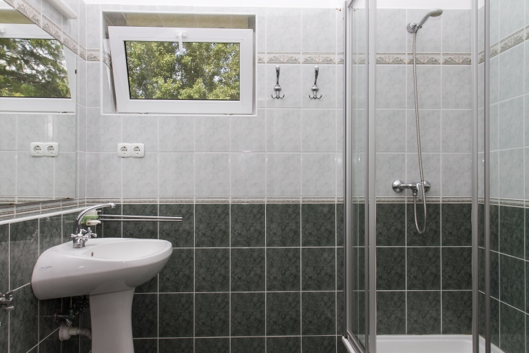 OG: Drei Zweibettzimmer, Dusche/WC, Balkon.