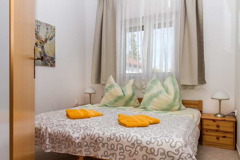 Information: Klimatisiertes Appartement für 4 Personen in zentraler, strandnaher Lage mit schöner, moderner Einrichtung, WLAN und Pool. Zu gemeinsamer Nutzung: Garten, Gartenmöbel, Gartengrill, Kinderspielplatz, Pool (3x6m). Autoabstellplatz, Sat-TV, Heizung sind vorhanden. Waschmöglichkeit für Aufpreis.